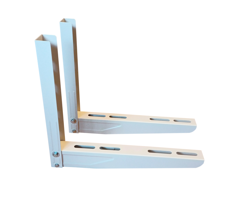 Wspornik skraplacza WS-47 — skladany, obciazenie 150 kg, ramie 470 mm / 400 mm. Ocynkowana blacha stalowa, lakier proszkowy RAL 9003.